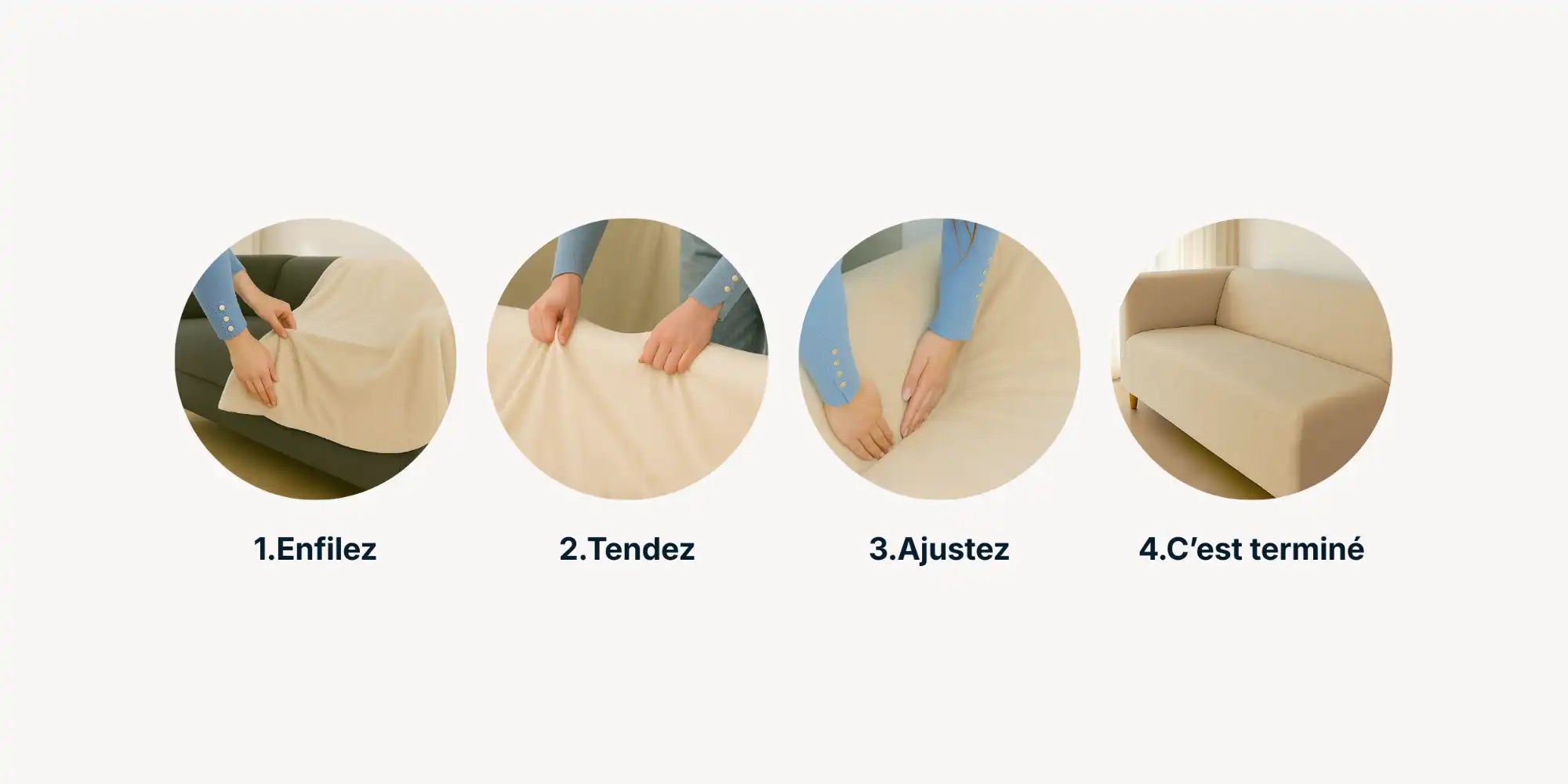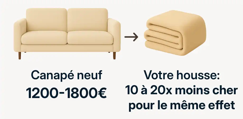 La housse Le Cocon Douillet lisse les imperfections, harmonise les volumes et redonne immédiatement de l’élégance à votre pièce.